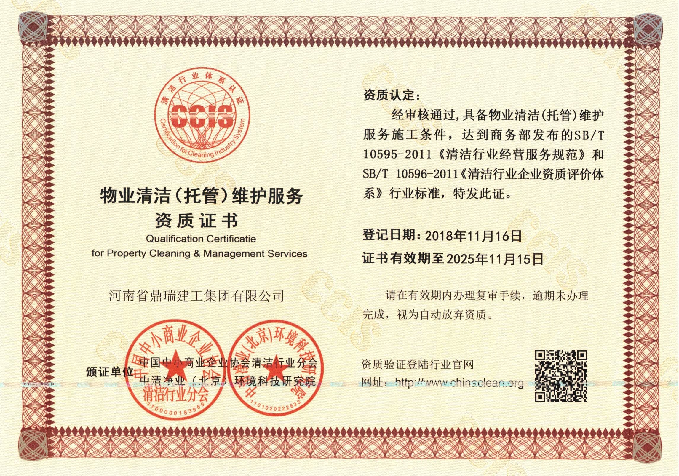 物業(yè)清潔(托管)維護服務(wù)資質(zhì)證書
