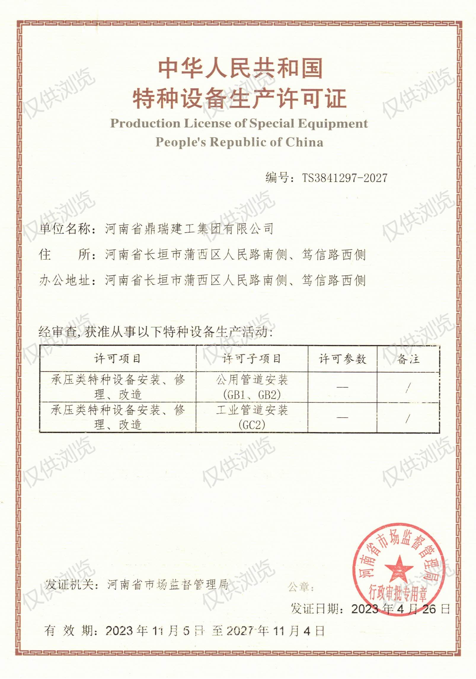 特種設(shè)備生產(chǎn)許可證
