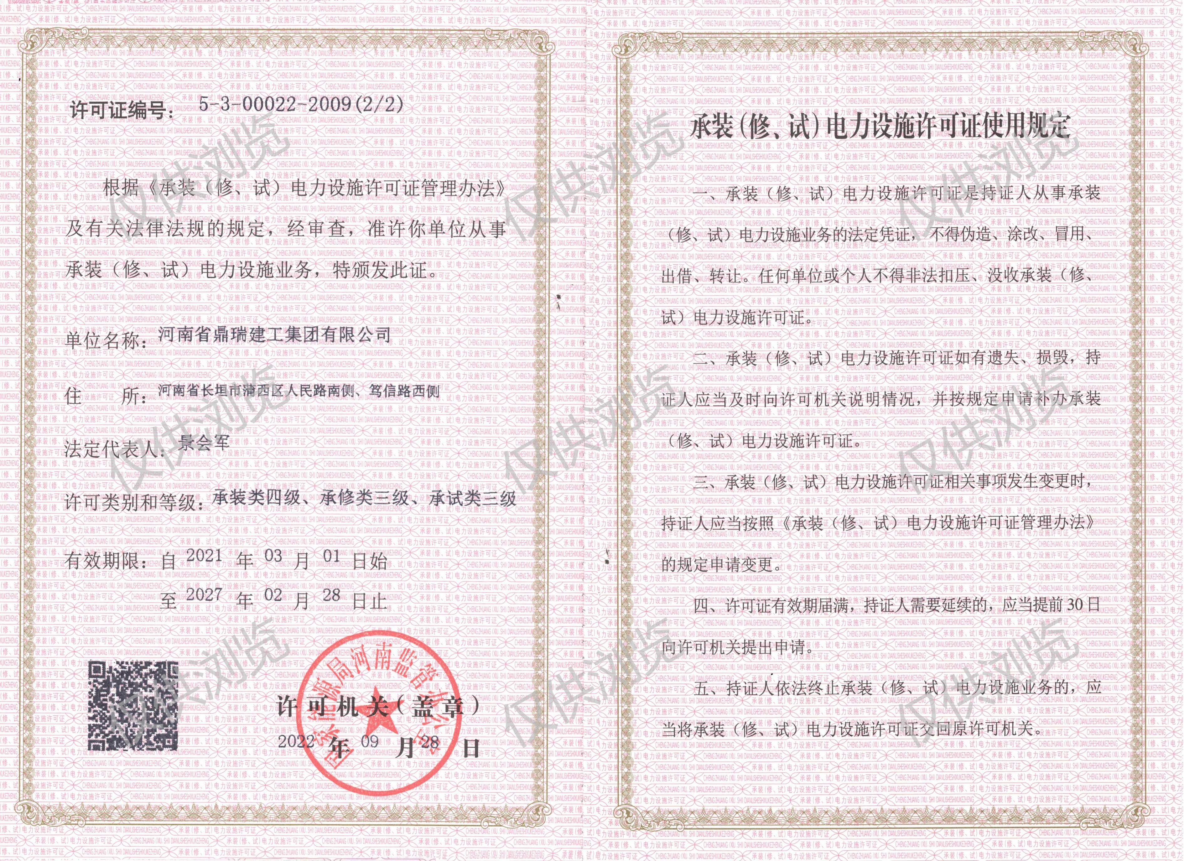 承裝電力設(shè)施許可證